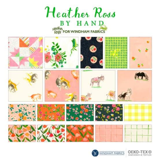 This listing is for a fat quarter bundle of By Hand by Heather Ross. There are 19 fabrics in the collection.